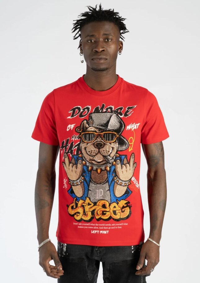 Sea el primero en opinar "Camiseta Left Point Roja Pedrería Brillante Perro Street"