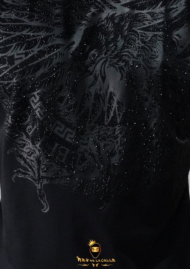 Soyez le premier à commenter "Camiseta Left Point Negra Pedrería Brillante Águila"