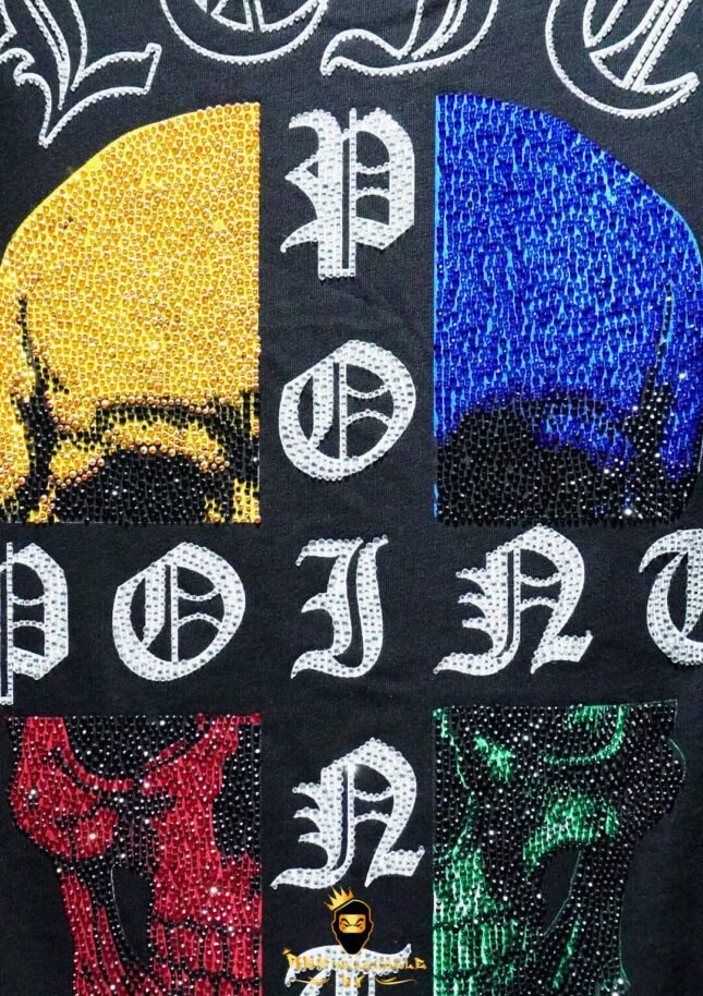 Soyez le premier à commenter "Camiseta Left Point Negra Pedrería Brillante Calavera Colorida"
