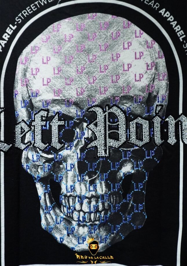 Soyez le premier à commenter "Camiseta Left Point Negra Pedrería Brillante Calavera Rosa Con Azul"