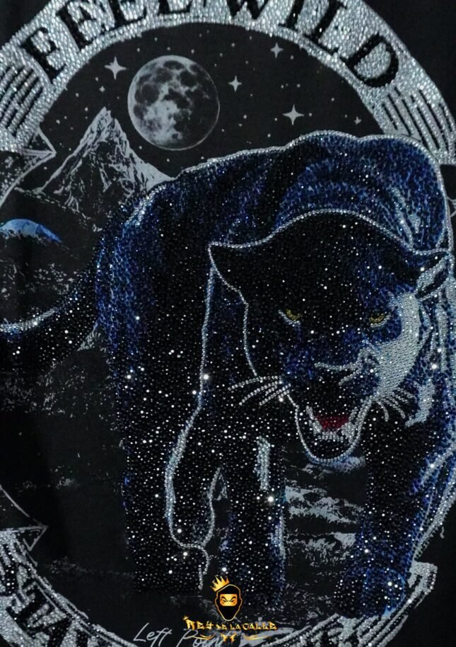 Soyez le premier à commenter "Camiseta Left Point Negra Pedrería Brillante Pantera Feel Wild"