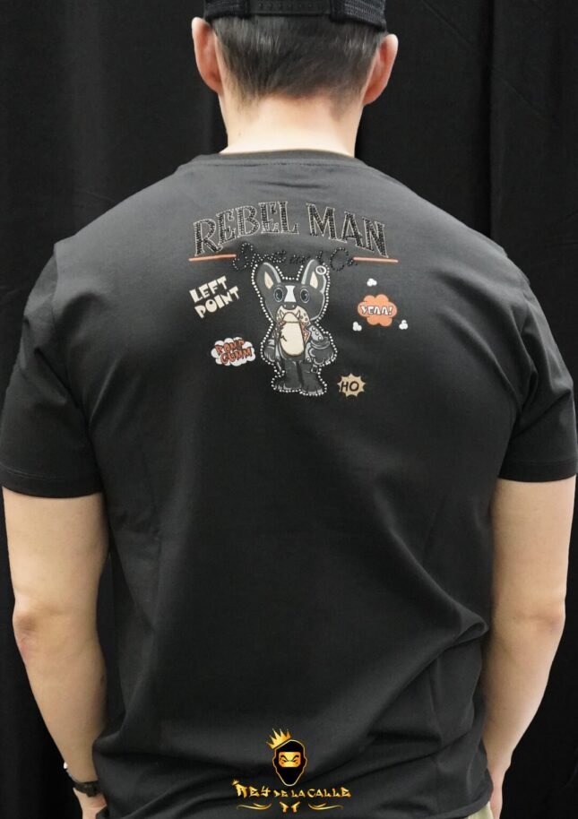 Soyez le premier à commenter "Camiseta Left Point Negra Pedrería Brillante Rebel Man"