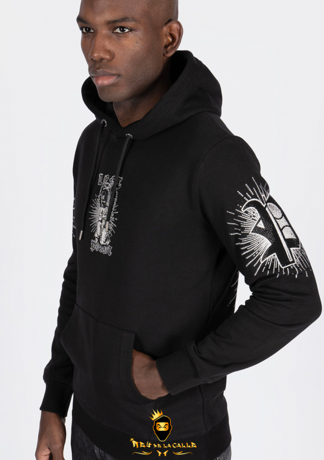 Soyez le premier à commenter "Sudadera Left Point Negra Pedrería Brillante Ángel Con Capucha"